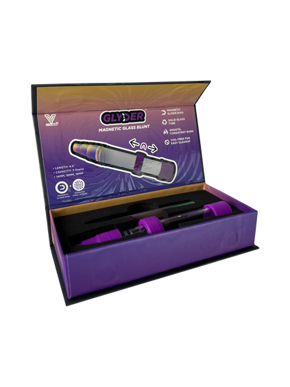 As part of my job for V Syndicate, I created the logo, packaging, and custom illustrations for this magnetic glass blunt called the "Glyder".
