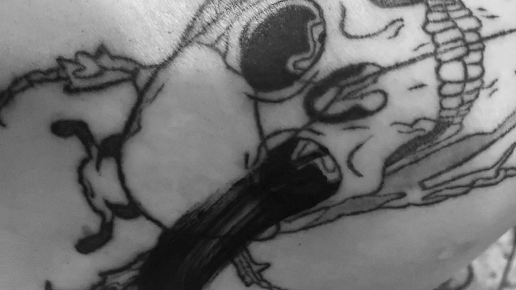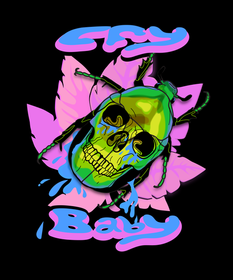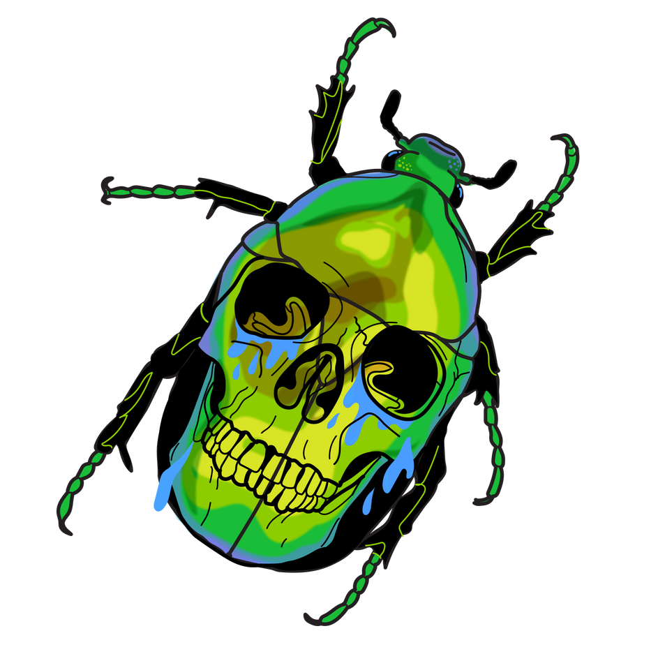 I combined a human skull with a green beetle to make this crying skull beetle design. I had seen skulls combined with other types of bugs for tattoos, but not specifically this beetle. I enjoyed this design so much that I tattooed it on myself!